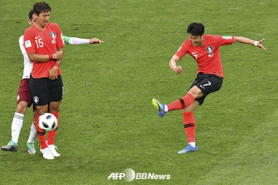 실제 손흥민은 자신의 첫 월드컵이었던 지난 2014년 대회 조별리그 2차전 알제리전에서 월드컵 데뷔골을 터뜨렸다. 2018년 대회 역시도 후반 추가시간 멕시코 골망을 시원하게 갈랐다. 월드컵 두 대회 연속 골을 터뜨리는 순간이었다.