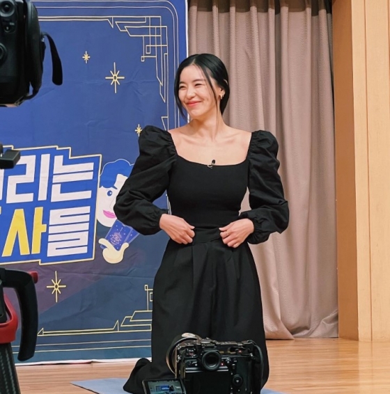 사진에서 전다빈은 지상렬과 이상욱과 함께 촬영에 임하고 있다.