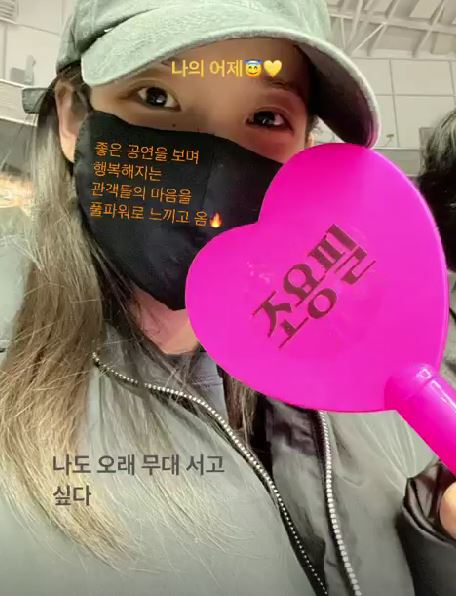 아이유는 28일 자신의 인스타그램 스토리(24시간 후 게시물이 삭제되는 기능)를 통해 "나의 어제"라는 글과 함께 사진을 공개했다.