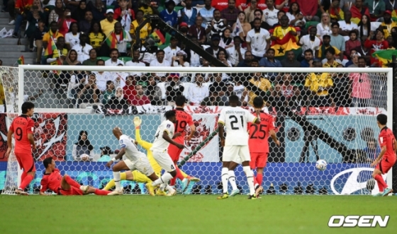 문제는 이 과정에서 김민재의 머리에 맞은 공이 안드레 아예우의 팔에 맞고 굴절돼 문전으로 흘렀다는 점. 그러나 명백한 핸드볼 파울에도 주심은 VAR을 거친 뒤에도 가나의 골로 인정했다.