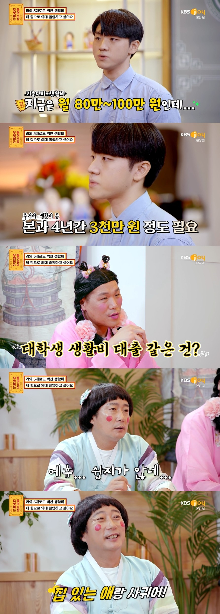 서장훈은 "본과에 들어가면 1년에 드는 생활비는 얼마 정도 드냐"라고 물었고, 의뢰인은 "지금은 기숙사비를 제가 내고 있다. 월에 80~100만 원 정도 쓰고 있다"라고 답했다.