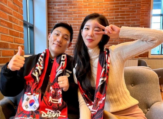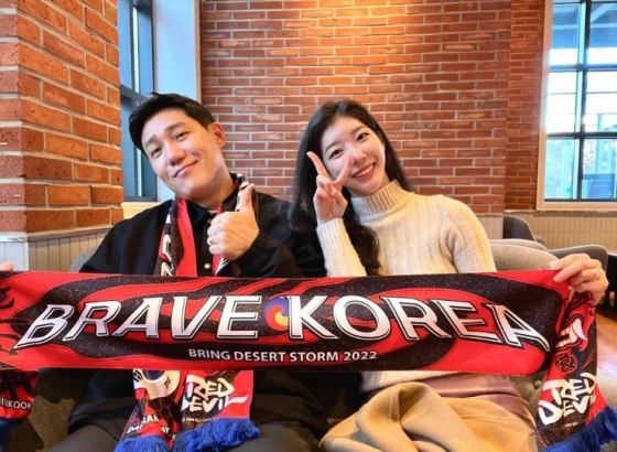 이와 함께 공개된 사진에는 모태범과 임사랑이 다정한 자세를 취하며 이날 열리는 한국과 가나의 2022 카타르월드컵 조별리그 H조 2차전 경기를 응원하는 모습이 담겨 있다.