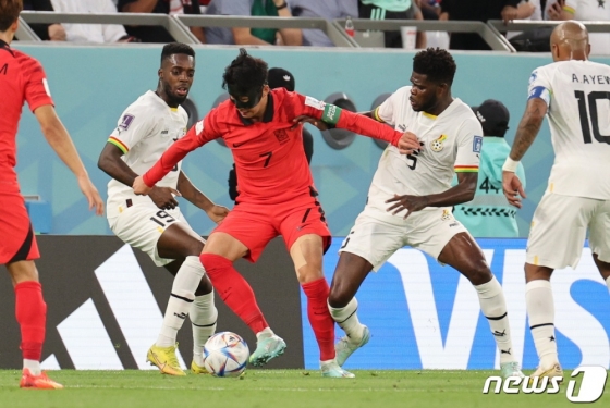 파울루 벤투 감독이 이끄는 한국 축구 대표팀은 28일 오후 10시(한국시간) 카타르 알 라얀에 위치한 에듀케이션 시티 스타디움에서 가나와 2022 국제축구연맹(FIFA) 카타르 월드컵 H조 2차전 경기를 치르고 있다. 전반전 끝난 현재 0-2로 끌려가고 있다.
