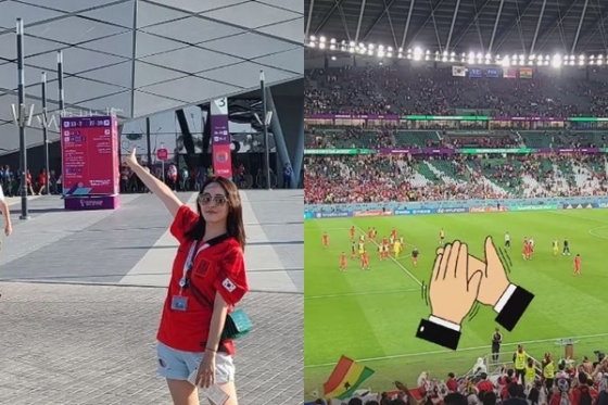 신아영은 이날 열린 한국과 가나의 2022 카타르월드컵 조별리그 H조 2차전 경기 현장도 전했다. 대한민국이 2대 3으로 아쉽게 패배했지만 신아영은 박수 치는 이모티콘을 더해 태극전사들을 격려했다.