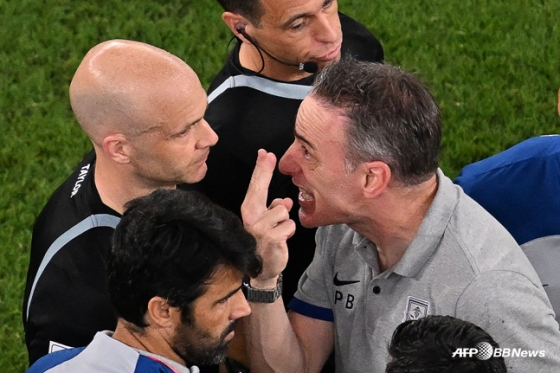 한 골차 승부에서 마지막 기회를 주지 않은 테일러 주심의 판정에 한국 선수들도 흥분했다. 김영권(울산현대), 이강인(마요르카)이 항의했고, 벤투 감독까지 뛰쳐나와 강한 불만을 드러냈다. 그러자 테일러 주심은 벤투 감독을 향해 레드카드를 꺼내들었다. 충격적인 판정이었다. 벤투 감독은 3차전 포르투갈전에서 벤치에 앉지 못할 전망이다.