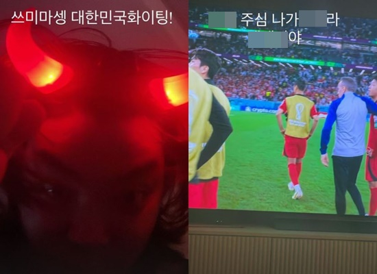 노엘은 28일 자신의 인스타그램 스토리(24시간 후 게시물이 삭제되는 기능)를 통해 "쓰미마셍. 대한민국 파이팅!"이라며 이날 열린 한국과 가나의 2022 카타르월드컵 조별리그 H조 2차전 경기를 응원했다.