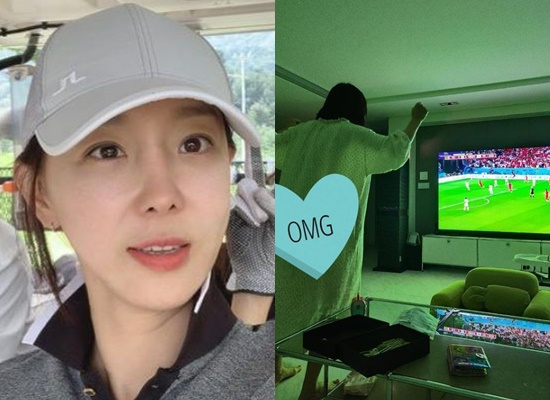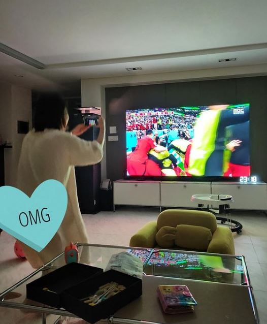 사진에는 시스루 잠옷을 입고 전날 열린 한국과 가나의 2022 카타르월드컵 조별리그 H조 2차전 경기를 응원하는 모습이 담겨 있다.