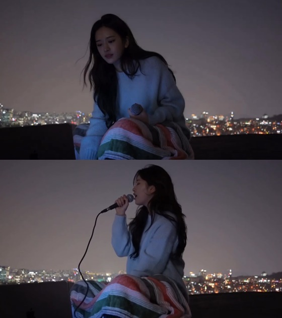 공개된 영상에는 야경을 배경 삼아 '사건의 지평선'을 부르는 안유진의 모습이 담겼다. 특히 밤바람에 긴머리를 흩날리는 안유지는 청순한 매력을 발산하고 있다.