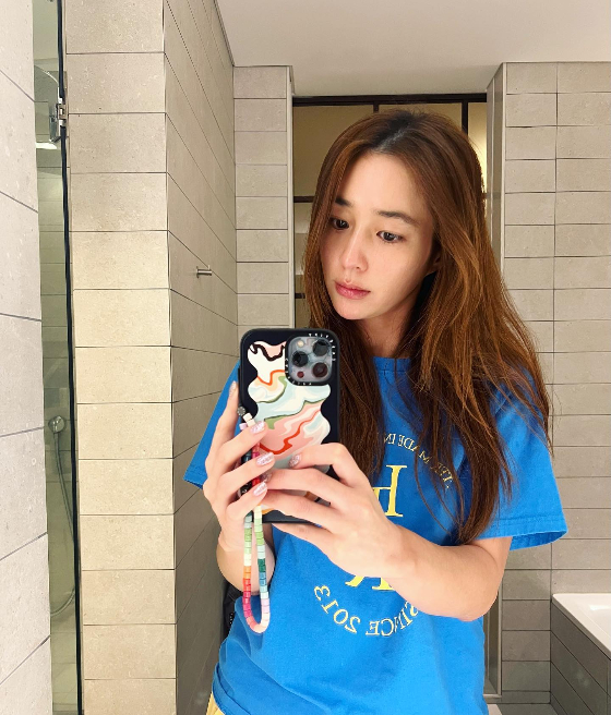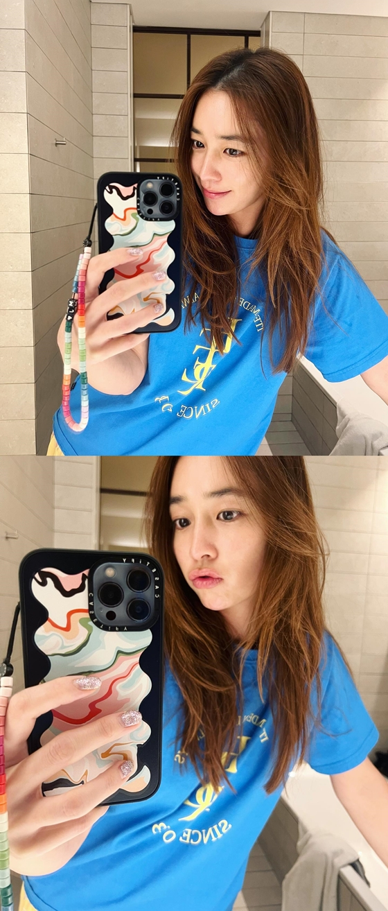 공개된 사진에는 이민정이 반팔 티셔츠를 입고 화장실에서 거울 셀카를 촬영한 모습이 담겼다. 세수 전에도 빛나는 미모가 시선을 끈다.