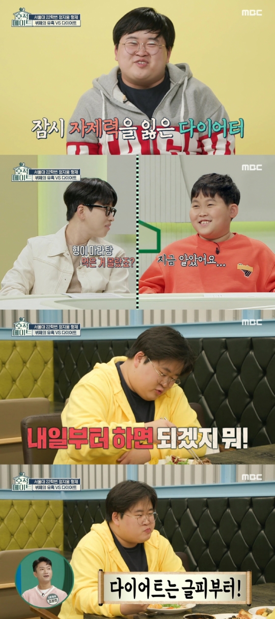 이날 다이어트 중이라는 정지웅은 뷔페에서 샐러드 위주 음식을 선택했다. 정지훤은 마라탕 등 자신이 먹고 싶었던 것들을 그릇에 담고 폭풍 먹방을 이어갔다.