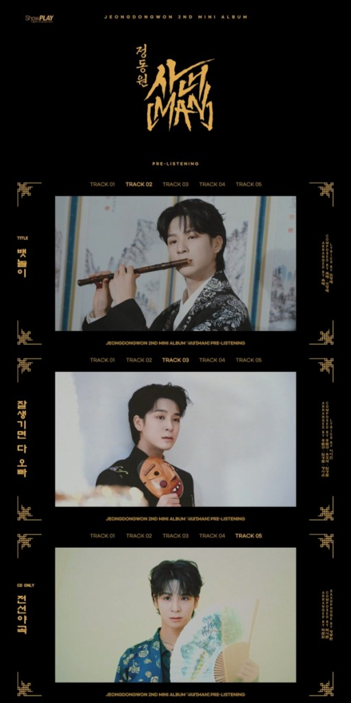앨범의 포문을 여는 첫 번째 트랙인 허세 가득한 남자의 남성미를 재미있게 표현한 세미 트로트 곡 '진짜 사나이'를 시작으로 유행어를 재치 있게 활용한 '잘생기면 다 오빠', 기존 발매된 바 있는 정통 트로트 곡을 리메이크한 정동원의 애창곡 '사랑은 눈물의 씨앗', 오직 실물 앨범의 CD에서만 들을 수 있는 리메이크 색소폰 연주곡 '전선야곡.' 총 4곡의 수록곡 역시 짧게 들어볼 수 있다.