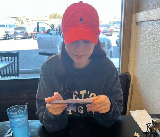 공개된 사진 속 나혜미는 한 식당을 방문한 모습이다. 테이블에 놓인 사진을 찍기 위해 집중하고 있는 모습이 인상적이다.