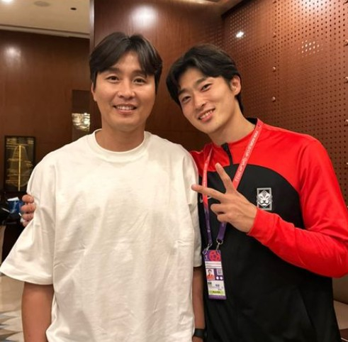 축구 국가대표 조규성 선수가 축구 전설 이동국과 투샷을 공개했다.