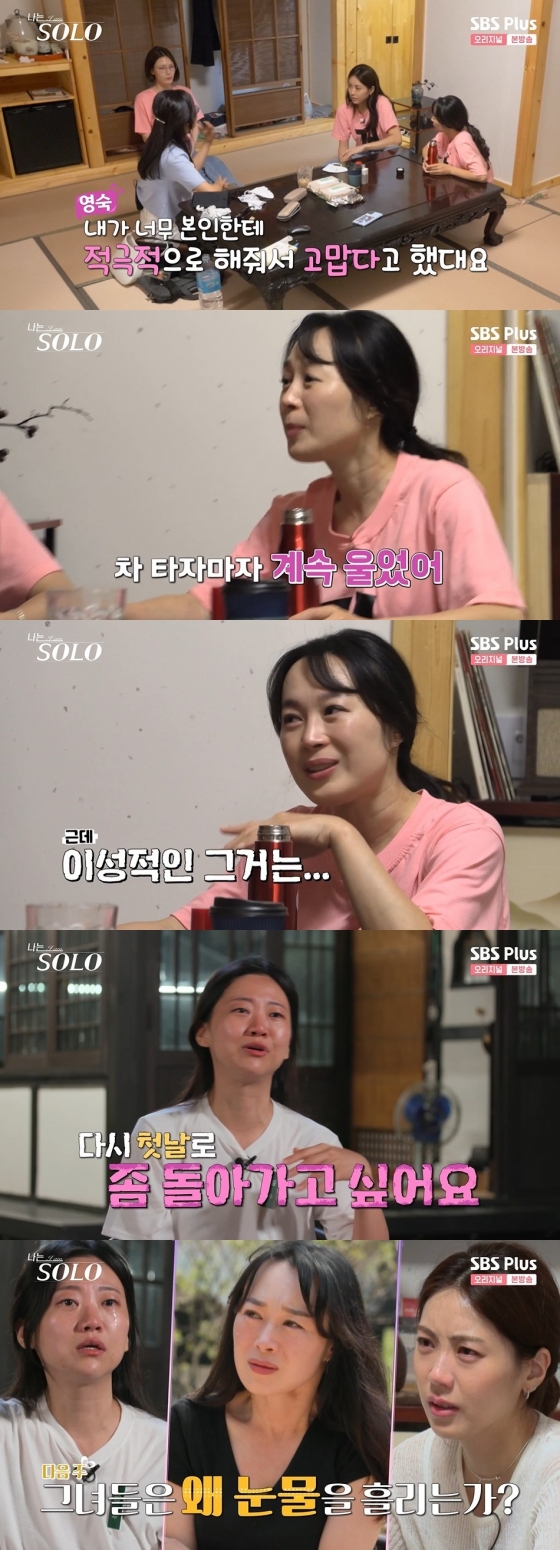 랜덤 데이트를 마친 여성 회원들은 데이트 후기로 수다를 떨었다. 정숙은 "나 아까 이상하게 광수님이랑 차에 타자마자 계속 울었다. 감정이 엄청 많이 소용돌이쳤다"라며 눈물을 보였다.