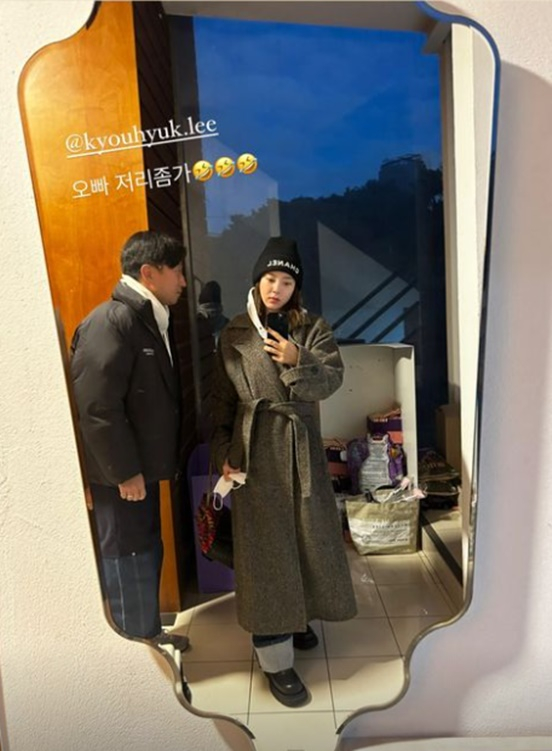 따뜻하게 옷을 차려 입은 손담비는 거울 앞에서 휴대폰을 들고 셀카를 찍고 있다. 손담비가 사진을 찍는 순간 남편 이규혁이 나오다가 함께 찍혔다. 포즈를 예쁘게 취한 손담비와 달리, 이규혁은 엉거주춤 자세로 사진 속에서 흔들린 모습.