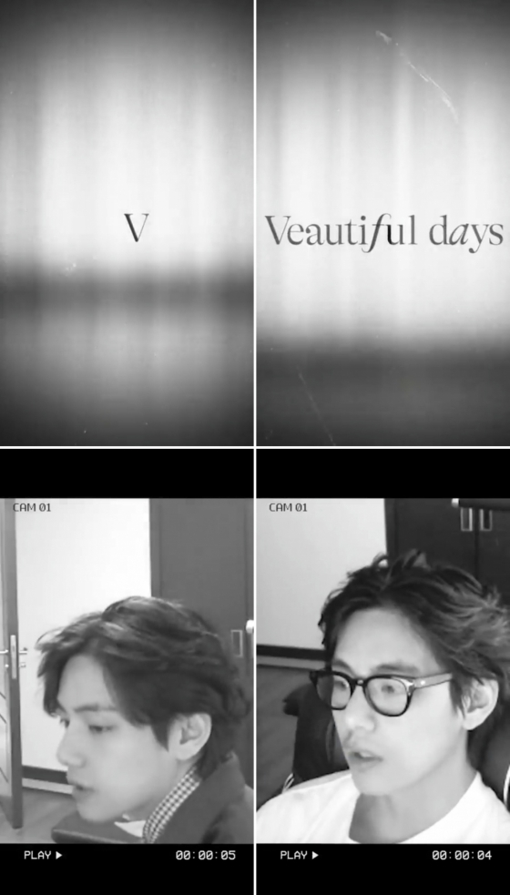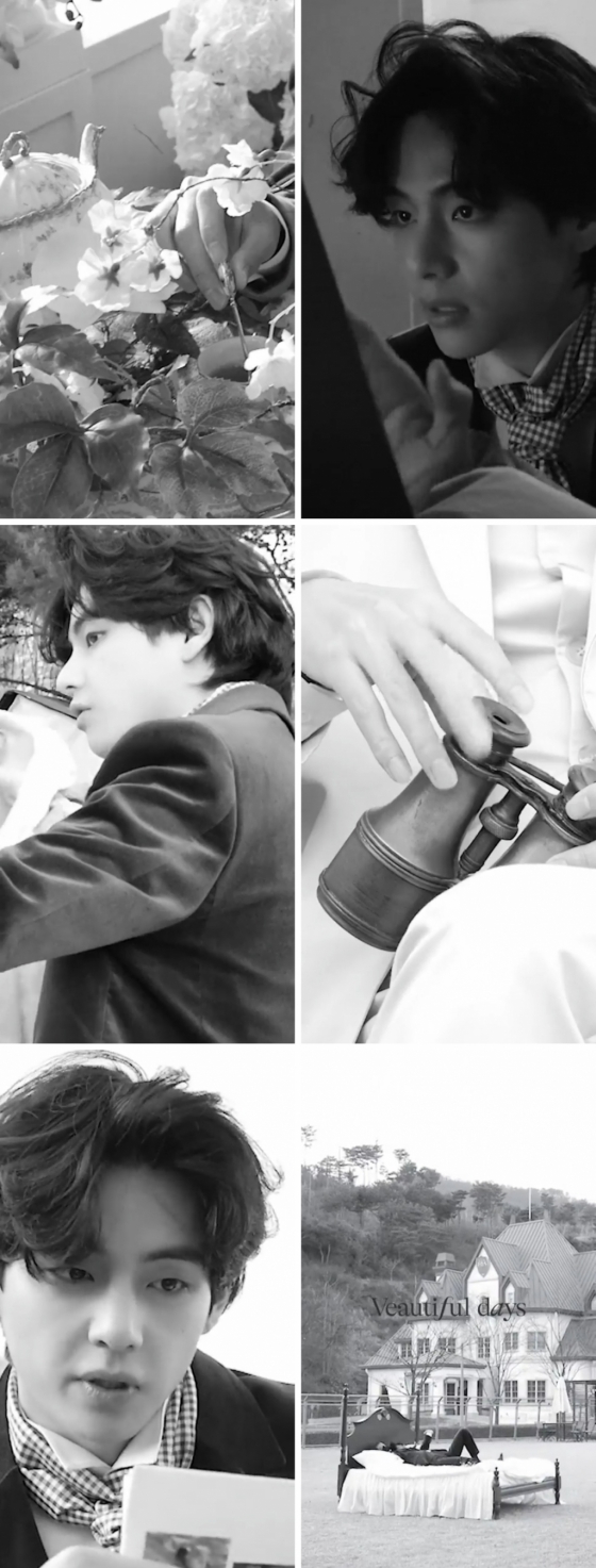 뷔의 이름과 'Veautiful days'으로 시작된 흑백 필터 영상은 거친 노이즈 효과를 줘 마치 한 편의 옛날 필름 영상을 보는 듯 고전적인 분위기를 자아냈다.