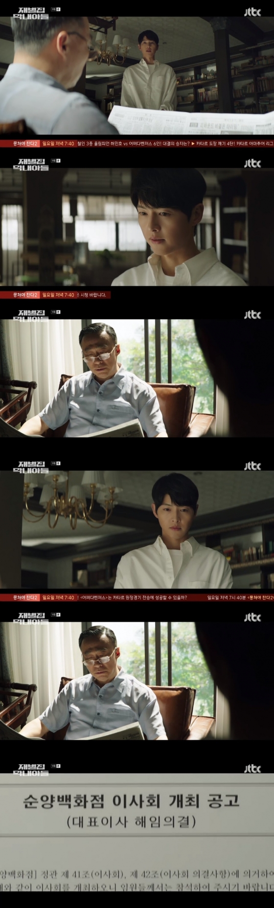 '재벌집 막내아들'에서 송중기가 이성민의 도움으로 순양 백화점 이사회를 소집했다.