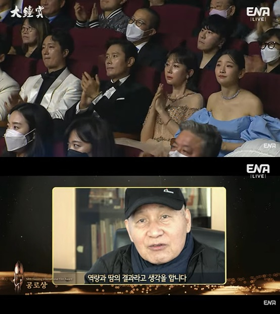 혈액암 투병 중인 안성기가 대종상 공로상을 수상한 가운데, 박해일 이병헌, 염정아, 박소담 등 배우들이 뜨거운 마음으로 응원하는 모습이 포착 됐다.