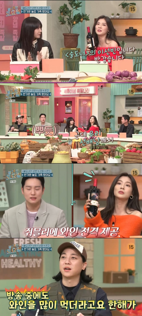 10일 방송된 tvN 예능 프로그램 '놀라운 토요일'(이하 '놀토')에서는 티빙 오리지널 드라마 '술꾼도시여자들2'에 출연 중인 배우 한선화, 이선빈 그리고 정은지가 게스트로 출연했다.