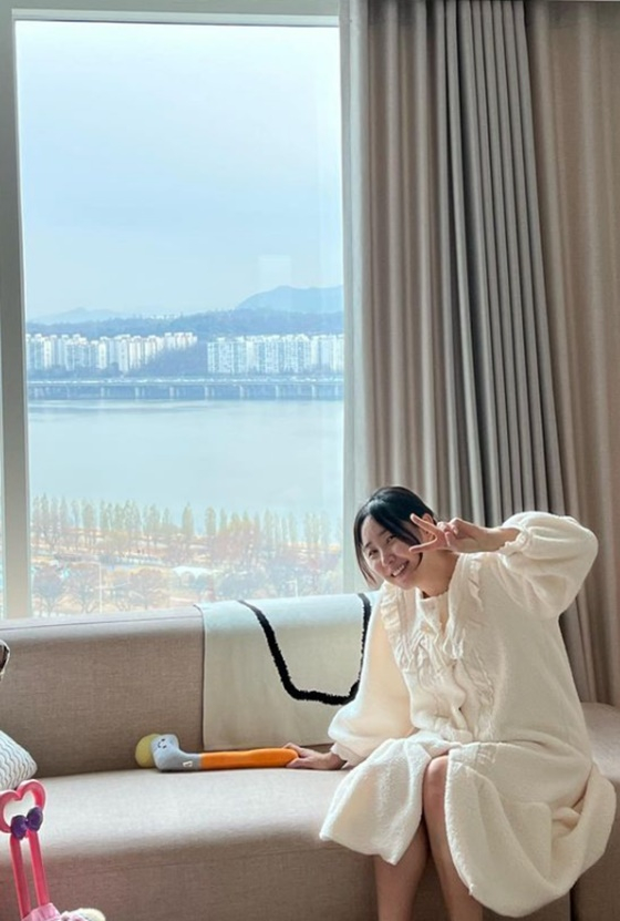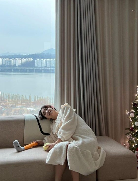 공개된 사진에는 청소 중 소파에 앉아 쉬는 최희의 모습이 담겼다. 최희의 뒤로는 광활한 한강뷰가 포착됐다.