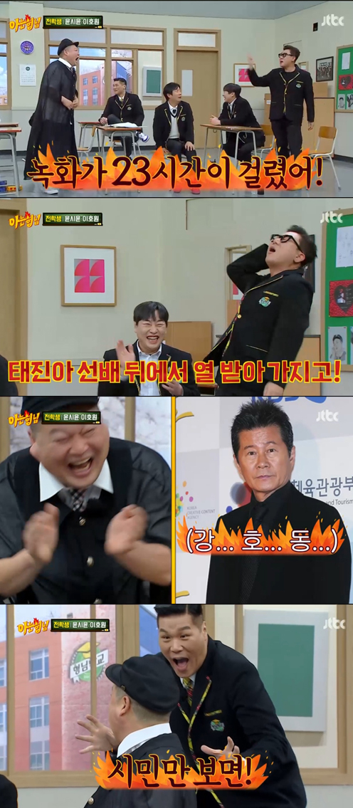 10일 방송된 JTBC 예능 프로그램 '아는 형님'(이하 '아형')에서는 영화 '탄생'의 주연인 윤시윤과 이호원이 전학생으로 출연했다.