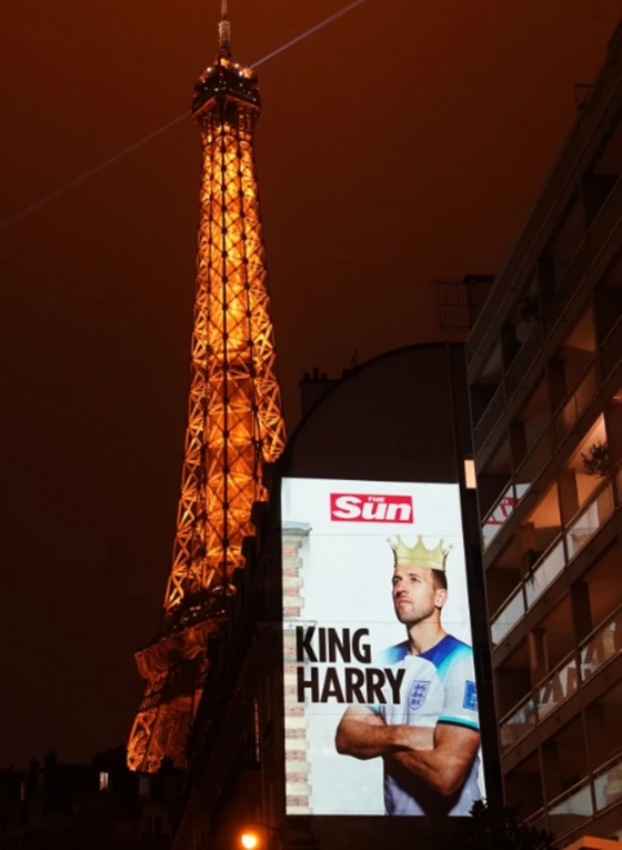 그래서 더 강한 응원을 동반한 도발도 서슴지 않았다. 영국 언론 '더선'은 프랑스의 상징인 에펠탑 앞에 마련된 광고판에 잉글랜드 선수들의 사진을 거는 통큰 계약을 했다. 현재 프랑스전을 앞두고 파리 시내에 자국 선수가 아닌 해리 케인이 왕관을 쓰고 '왕'을 자처한 사진이 걸려있다. 또 잉글랜드의 염원인 '월드컵을 집으로 가져오자(It's coming home)'는 문구도 프랑스어로 삽입했다.