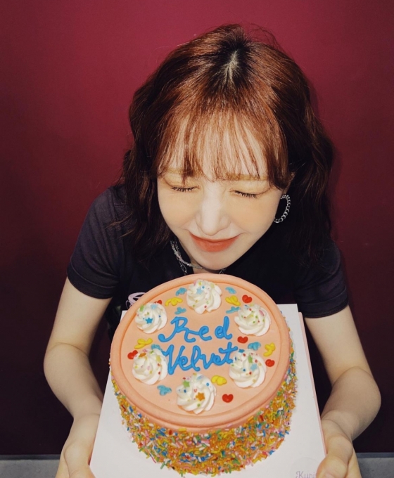 공개된 사진에는 대기실에서 레드벨벳이 레터링된 케이크를 들고 있는 웬디의 모습이 담겼다. 미소를 지으며 눈을 찡그린 웬디의 상큼한 분위기가 보는 이의 눈길을 끌었다.
