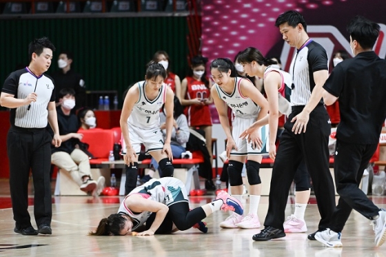 설상가상으로 이날 10득점으로 분전했던 김애나마저 부상을 당했다. 그는 3쿼터 막판 슛을 시도한 후 착지 과정에서 상대 선수의 발을 밟으며 오른쪽 발목이 돌아가고 말았다. 고통을 호소한 김애나는 결국 들것에 실려 경기장을 떠났다.