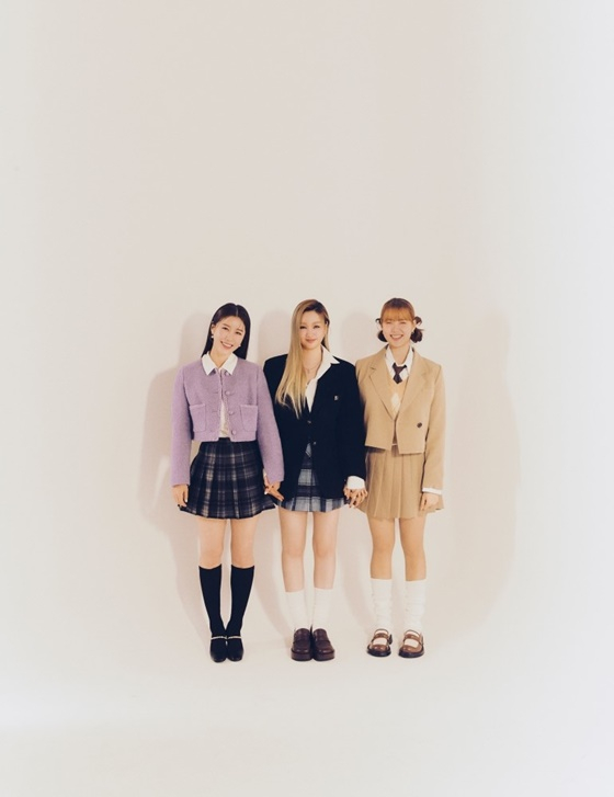 공개된 이미지에서 연말 분위기에 어울리는 러블리한 프레피룩을 입은 나비, 쏠(SOLE), 엄지윤이 모습이 담겼다. 세 사람은 각자 개성을 살린 스타일링 속에서도 조화롭게 어우러져 눈길을 끈다.