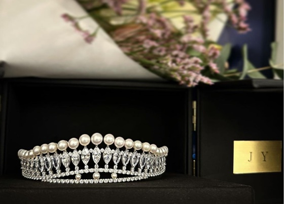 또 다른 사진에는 아이유가 선물한 티아라가 포착됐다. 특히 티아라에는 진주가 박혀 있어 고급스러움을 뽐내고 있다.