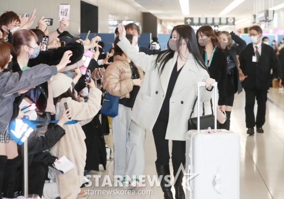 걸그룹 있지가 일본 나고야 니혼가이시홀에서 열리는 스타뉴스-미디어보이 주최 '2022 Asia Artist Awards IN JAPAN'(2022 아시아 아티스트 어워즈) 참석을 위해 12일 오후 주부 국제공항을 통해 입국하고 있다.