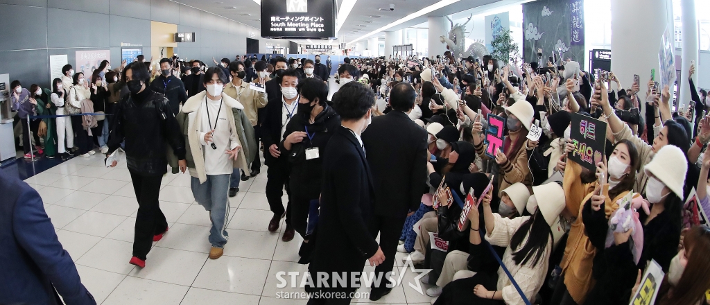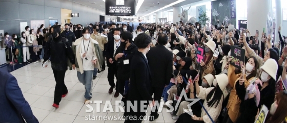 그룹 세븐틴이 일본 나고야 니혼가이시홀에서 열리는 스타뉴스-미디어보이 주최 '2022 Asia Artist Awards IN JAPAN'(2022 아시아 아티스트 어워즈) 참석을 위해 12일 오후 주부 국제공항을 통해 입국하고 있다.