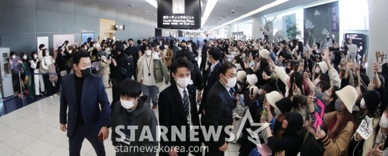 그룹 세븐틴이 일본 나고야 니혼가이시홀에서 열리는 스타뉴스-미디어보이 주최 '2022 Asia Artist Awards IN JAPAN'(2022 아시아 아티스트 어워즈) 참석을 위해 12일 오후 주부 국제공항을 통해 입국하고 있다.