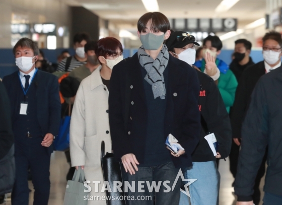 그룹 ATBO가 일본 나고야 니혼가이시홀에서 열리는 스타뉴스-미디어보이 주최 '2022 Asia Artist Awards IN JAPAN'(2022 아시아 아티스트 어워즈) 참석을 위해 12일 오후 주부 국제공항을 통해 입국하고 있다.