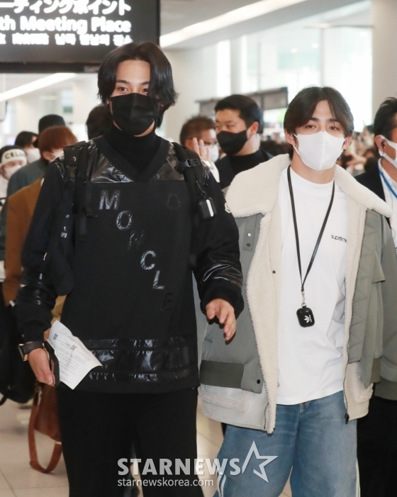 그룹 세븐틴이 일본 나고야 니혼가이시홀에서 열리는 스타뉴스-미디어보이 주최 '2022 Asia Artist Awards IN JAPAN'(2022 아시아 아티스트 어워즈) 참석을 위해 12일 오후 주부 국제공항을 통해 입국하고 있다.