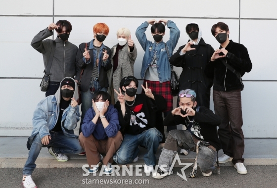그룹 트레저가 일본 나고야 니혼가이시홀에서 열리는 스타뉴스-미디어보이 주최 '2022 Asia Artist Awards IN JAPAN'(2022 아시아 아티스트 어워즈) 참석을 위해 12일 오후 주부 국제공항을 통해 입국하고 있다.