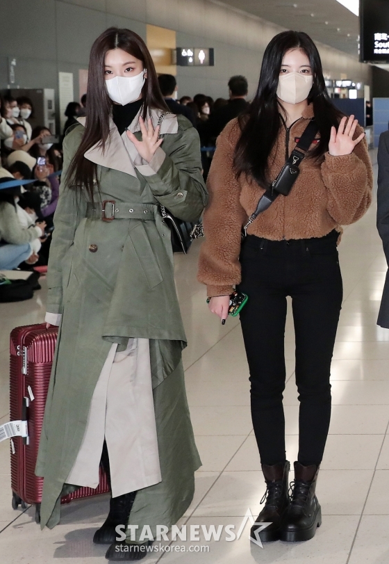 걸그룹 있지 예지, 리아가 일본 나고야 니혼가이시홀에서 열리는 스타뉴스-미디어보이 주최 '2022 Asia Artist Awards IN JAPAN'(2022 아시아 아티스트 어워즈) 참석을 위해 12일 오후 주부 국제공항을 통해 입국하고 있다.