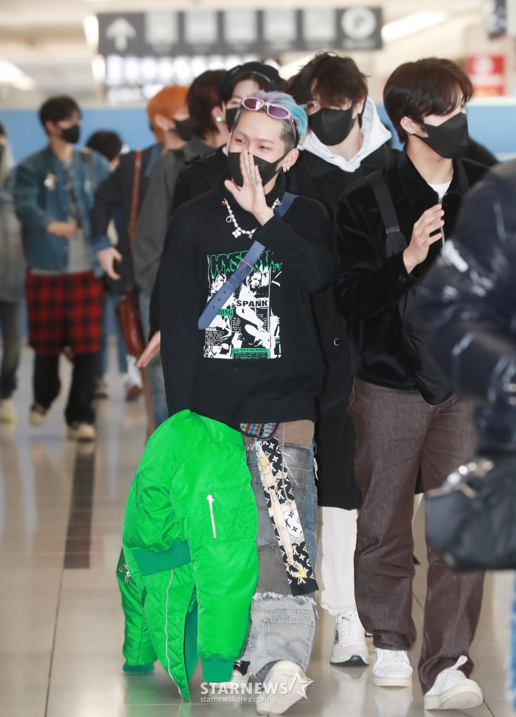 그룹 트레저가 일본 나고야 니혼가이시홀에서 열리는 스타뉴스-미디어보이 주최 '2022 Asia Artist Awards IN JAPAN'(2022 아시아 아티스트 어워즈) 참석을 위해 12일 오후 주부 국제공항을 통해 입국하고 있다.