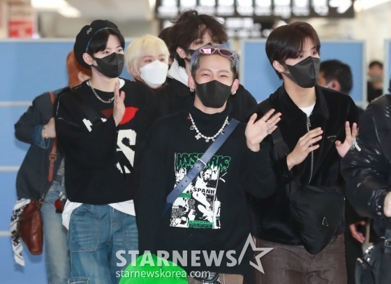 그룹 트레저가 일본 나고야 니혼가이시홀에서 열리는 스타뉴스-미디어보이 주최 '2022 Asia Artist Awards IN JAPAN'(2022 아시아 아티스트 어워즈) 참석을 위해 12일 오후 주부 국제공항을 통해 입국하고 있다.