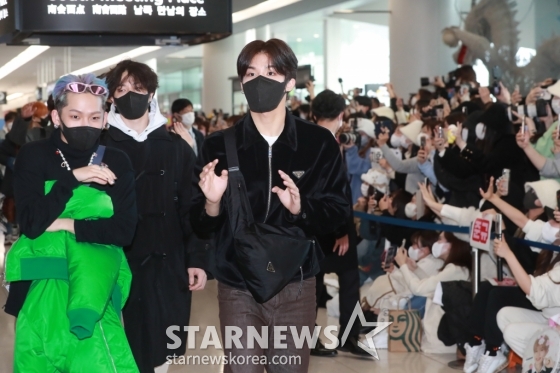 그룹 트레저가 일본 나고야 니혼가이시홀에서 열리는 스타뉴스-미디어보이 주최 '2022 Asia Artist Awards IN JAPAN'(2022 아시아 아티스트 어워즈) 참석을 위해 12일 오후 주부 국제공항을 통해 입국하고 있다.