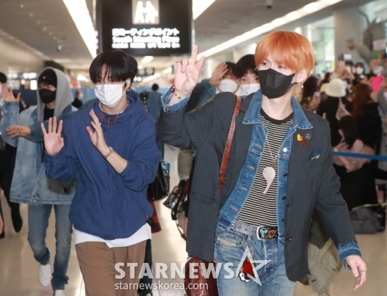 그룹 트레저가 일본 나고야 니혼가이시홀에서 열리는 스타뉴스-미디어보이 주최 '2022 Asia Artist Awards IN JAPAN'(2022 아시아 아티스트 어워즈) 참석을 위해 12일 오후 주부 국제공항을 통해 입국하고 있다.