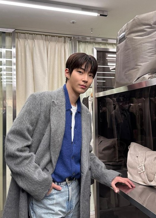 공개된 사진에는 황인엽이 청색 니트 카디건에 그레이 톤 코트를 매칭 한 패션으로 선반에 기댄 모습이 담겼다. 그는 날렵한 콧대와 턱 선을 자랑하며 겨울 패션을 완벽하게 소화해 시선을 끌었다.