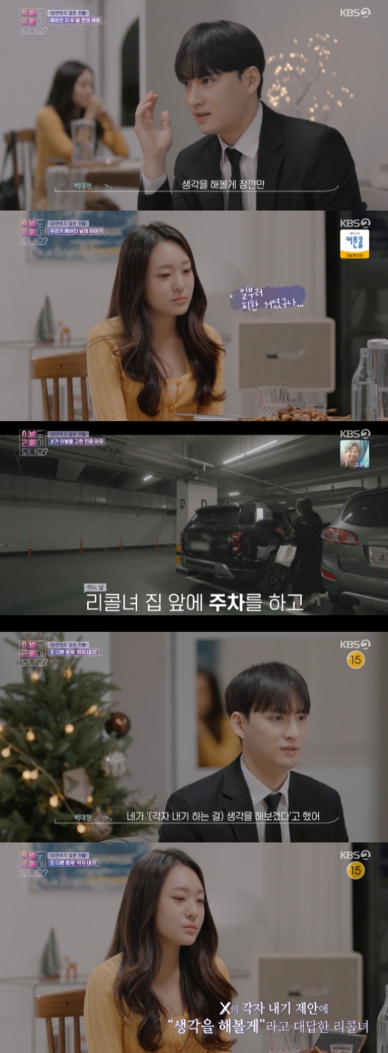 12일 오후 방송된 KBS 2TV '이별도 리콜이 되나요?'에서 리콜녀가 리콜식탁에서 X를 기다렸다.