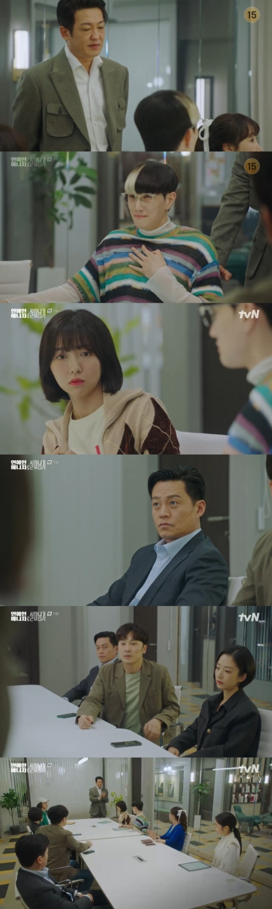 12일 오후 방송된 tvN 월화드라마 '연예인 매니저로 살아남기'에서 메쏘드엔터 새 대표 구해준(허성태 분)이 신인 개발 팀장을 발표하는 모습이 담겼다.