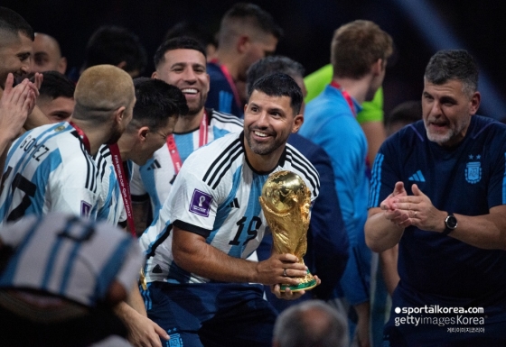 이날 아르헨은 리오넬 메시의 '라스트 댄스'를 화려한 대관식으로 마무리했다. 메시의 '단짝' 아구에로도 함께 자리했다. 아구에로는 월드컵 트로피를 들고 믹스트존을 걸어가는 메시의 뒤를 따라 술을 마시며 함께 기뻐했다.