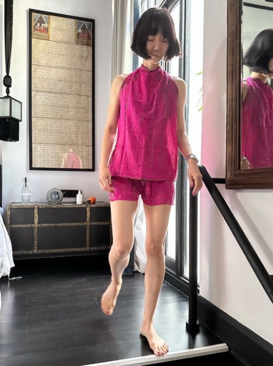 공개된 사진에는 단발머리의 배두나가 핫 핑크 색의 투 피스를 입고 침실에서 걸어 나오는 모습이 담겼다. 그는 핫 팬츠와 민소매 의상으로 길쭉하면서도 깡마른 명품 보디를 자랑해 시선을 끌었다.