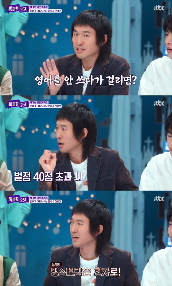 전현무가 "예전에 민사고에 촬영을 간 적이 있는데, 민사고에선 영어로 토론을 하더라"며 놀랐다. 전범선은 "한옥에서 한복을 입고 사는데 영어를 써야 한다. 영어 상용 정책이 있어서 영어를 안 쓰다가 학생부 선생님에게 걸리면 교내 법정을 간다. 벌점이 40점을 넘으면 명심보감을 한자로 써야 한다"고 밝혔다.