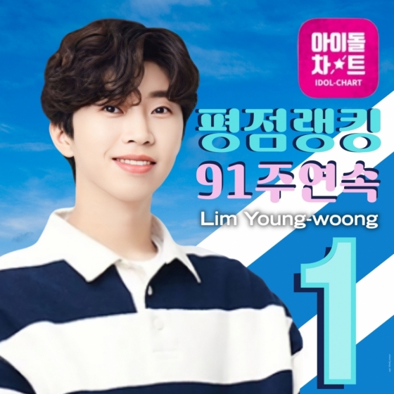 이로써 임영웅은 아이돌차트 평점랭킹에서 91주 연속 1위에 오르게 됐다.