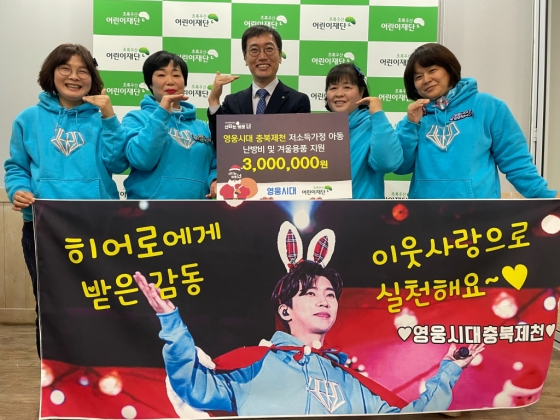 임영웅 팬클럽 충북제천영웅시대는 연말을 맞아 12월 20일 초록어린이재단 충북지역본부을 방문, 300만원의 후원금을 전달했다.