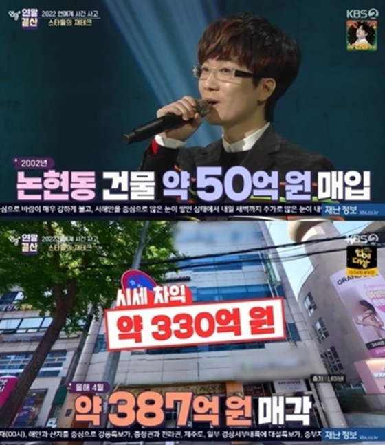 서태지는 이 건물을 지난 4월 387억에 매각한 것으로 전해졌다. 시세 차익은 무려 330억 이상이다.